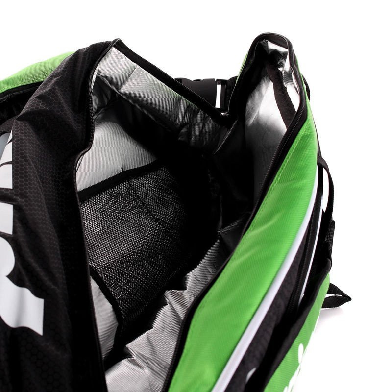 Torba do squasha z serii Tour Team tym razem dedykowana graczom squashowym. Prince Tour Team 12 Pack, czyli wynik połączenia materiałów najwyższej jakości z wysoką funkcjonalnością. Torba ta posiada 2 duże komory główne mogące pomieścić do 12 rakiet, dodatkowo jedna komora zapewnia ochronę termiczną. Z boku torby znajduje się duża kieszeń na akcesoria. Bez problemu zmieścisz w niej klucze, portfel, dokumenty itp. Z tyłu duża kieszeń na buty. Z przodu taka sama, lecz posiadająca dodatkowo ochronę termiczną, idealna na napój czy jedzenie.