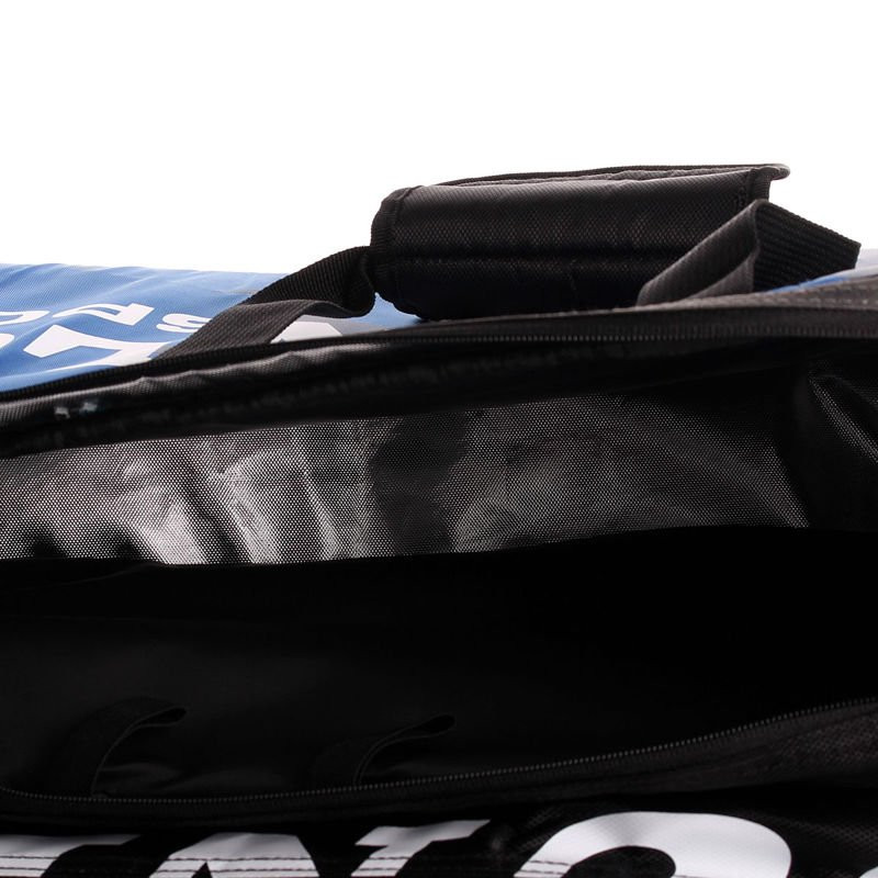 W skład wyposażenia wchodzi również worek na buty (przypinany do wnętrza torby) oraz uchwyt na rakietę z elastycznego materiału.
