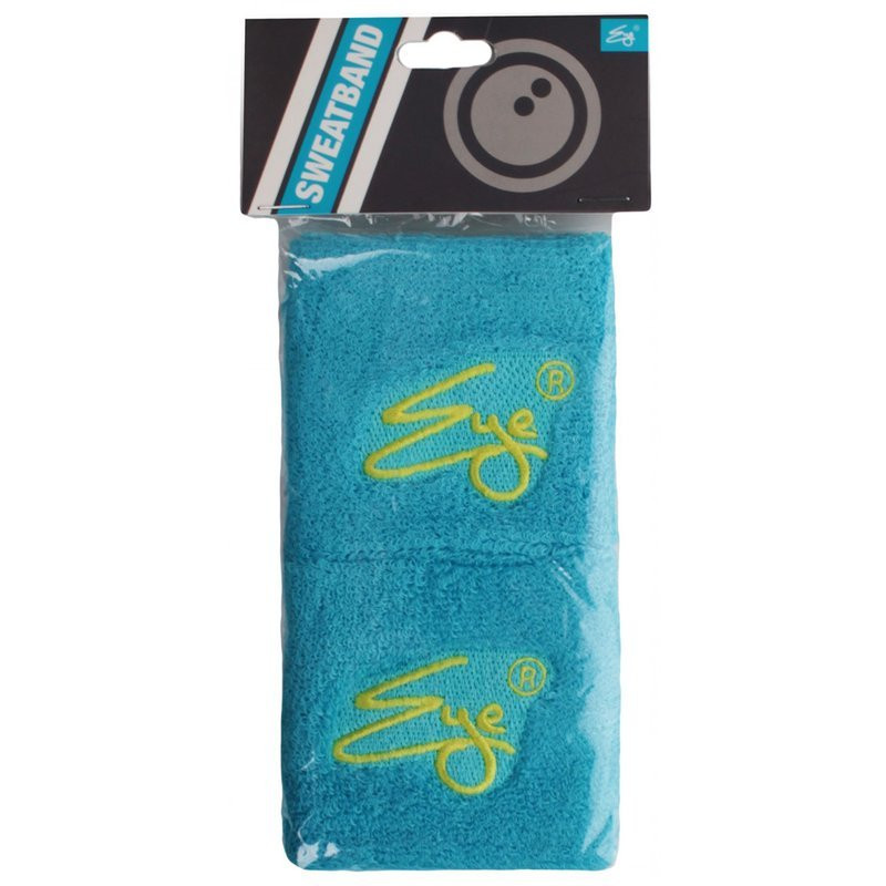 Frotka na rękę Eye Wristand Niebieska z żółtym logo. W opakowaniu dwie sztuki.