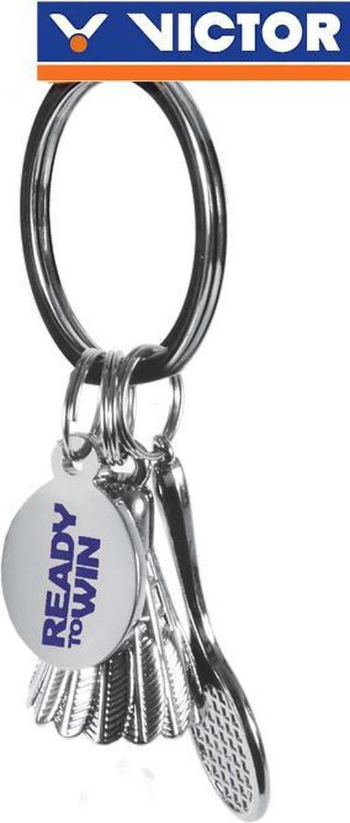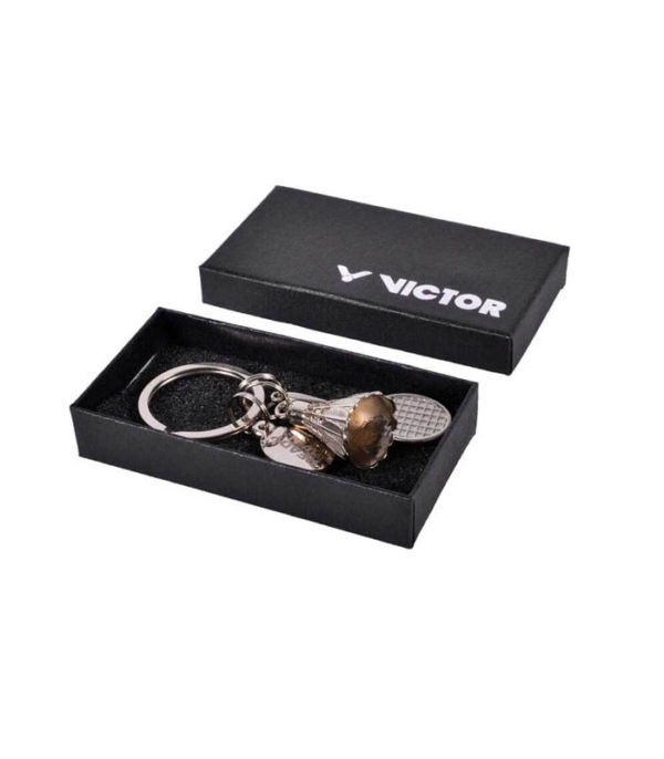 Brelok Victor rakieta plus lotka do badmintona wykonany ze stali chromowanej. To doskonały gadżet dla każdego badmintonisty.