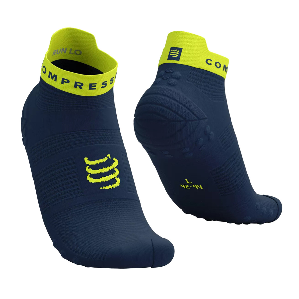 Tried and tested over hundreds of kilometres by our team, the 4th generation of our Pro Racing Socks Run Low are bringing revolutionized aeration and blister-protection to your warm weather runs. The technical weave is lightweight and ventilated, quickly wicking away moisture so your feet remain cool and dry. A redesigned, wider toe box offers a more ergonomic fit and improved proprioception, allowing the toes to grip intuitively on landing for a natural, fluid stride. The light knit around the heel, identical to the PRS High version, offers targeted support when you pick up the pace, while terry cloth padding on the big toe saves you from blackened nails on longer runs. The medium arch support boosts micro circulation and prevents the fabric from twisting and folding to keep painful blisters and irritation at bay. Our brand new Flat.Dots technology joins special 3D.dots around the Achilles tendon for added padding and protection as your feet beat the tarmac. Underfoot, a pattern of 3D.Dots (75%) and Flat.Dots (25%) cushions impact and offers added ventilation, grip in the shoe as well as gentle stimulation to boost venous return and delay fatigue. The anatomic fit and technologies are specifically targeted at the rigours of road running, while the low cut ensures overheating is never a worry. An ergonomic tab at the rear adds a touch of comfort and style and, should you ever forget you’re heading out for a run, the discipline is discreetly embroidered on the inside. The classic design is a nod to our performance DNA, so that all you have left to do is aim for your next PB.