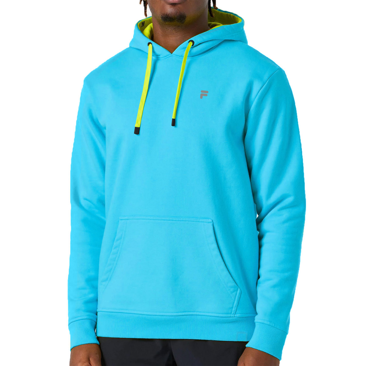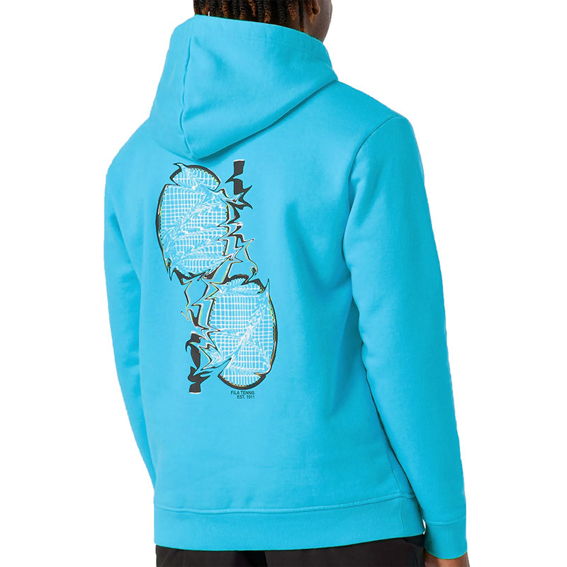 The comfortable and stylish Fila Hoody Darius Hoodie will help you warm up before the game and show everyone your favorite sport when you wear it off the court. It has a kangaroo pocket, a drawstring hood and a large graphic on the back depicting an electrified tennis racket on the back.