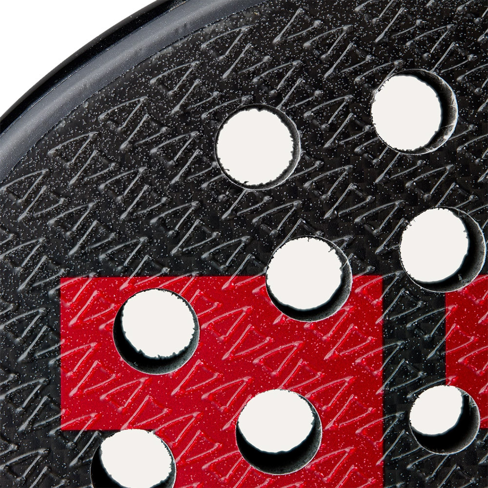 Inspired by Argentinian pro Fernando Belasteguin, his signature Bela V3 padel racket embodies his unrivaled determination to improve his game and motivate all players to tap into their own potential. The V3 provides all the power, precision and comfort that competitive players need to play the game at a high level. The V-Bridge throat and channel enhance stability, maneuverability and the racket's overall feel. Multi-diameter DuoGrid holes help with power on overhead shots and control on defense and volleys, with an innovative hole-drilling technique that increases bite, even when you don't make optimal ball contact. The 3K carbon face with signature Spin2 texture generates maximum spin with power on attacking shots.