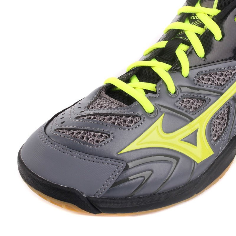 Najwyższej klasy lekkie buty do badmintona z serii Mizuno Wave Fang. W najnowszym modelu buta w tylnej części podeszwy zastosowano technologię Wave, która łączy w sobie dwie niezwykle ważne funkcje: amortyzację i stabilność.