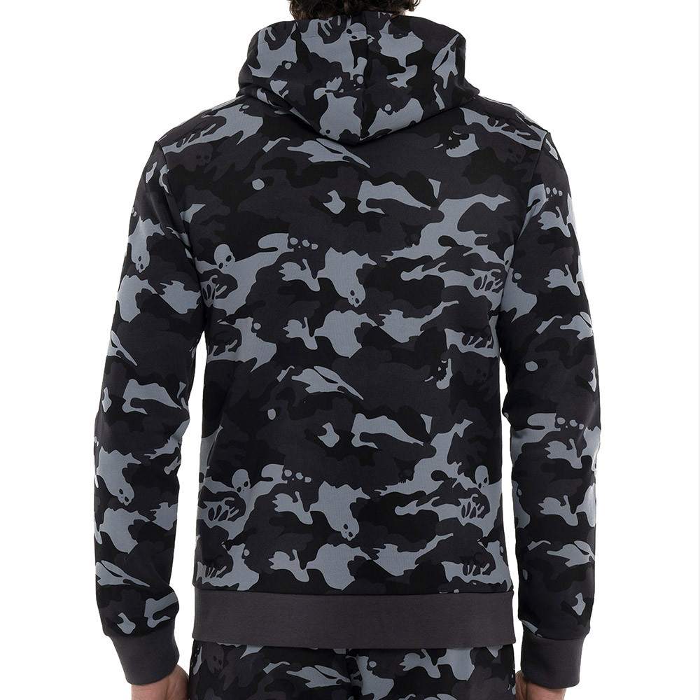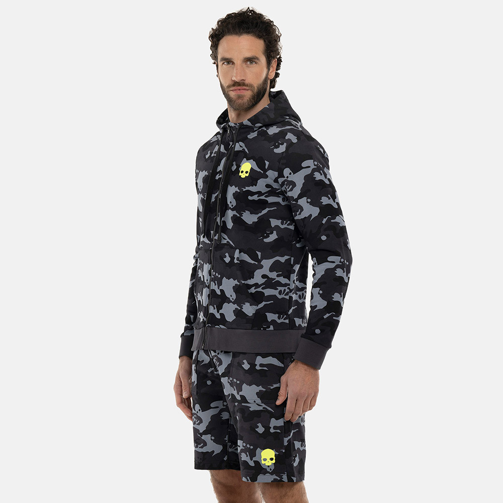 Hydrogen full-zip sweatshirt in soft terry cotton with anthracite camouflage texture and contrasting neon yellow skull logo.