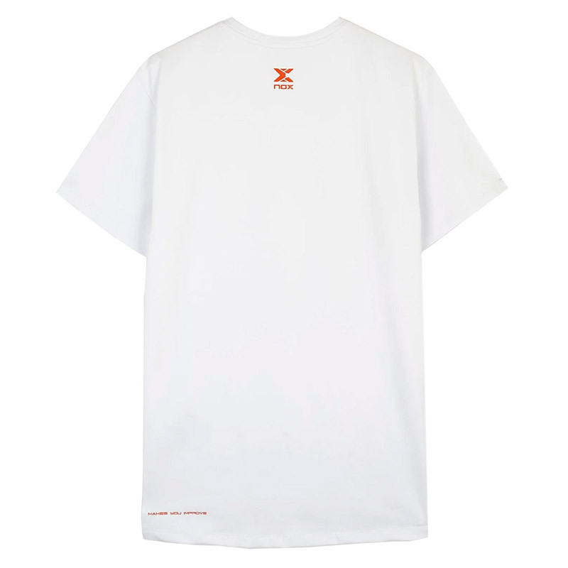 The NOX Team men's technical jersey in white with orange details is designed for maximum comfort, breathability, and freedom of movement during every match. Its classic, regular fit makes it a must-have for any padel player's wardrobe.