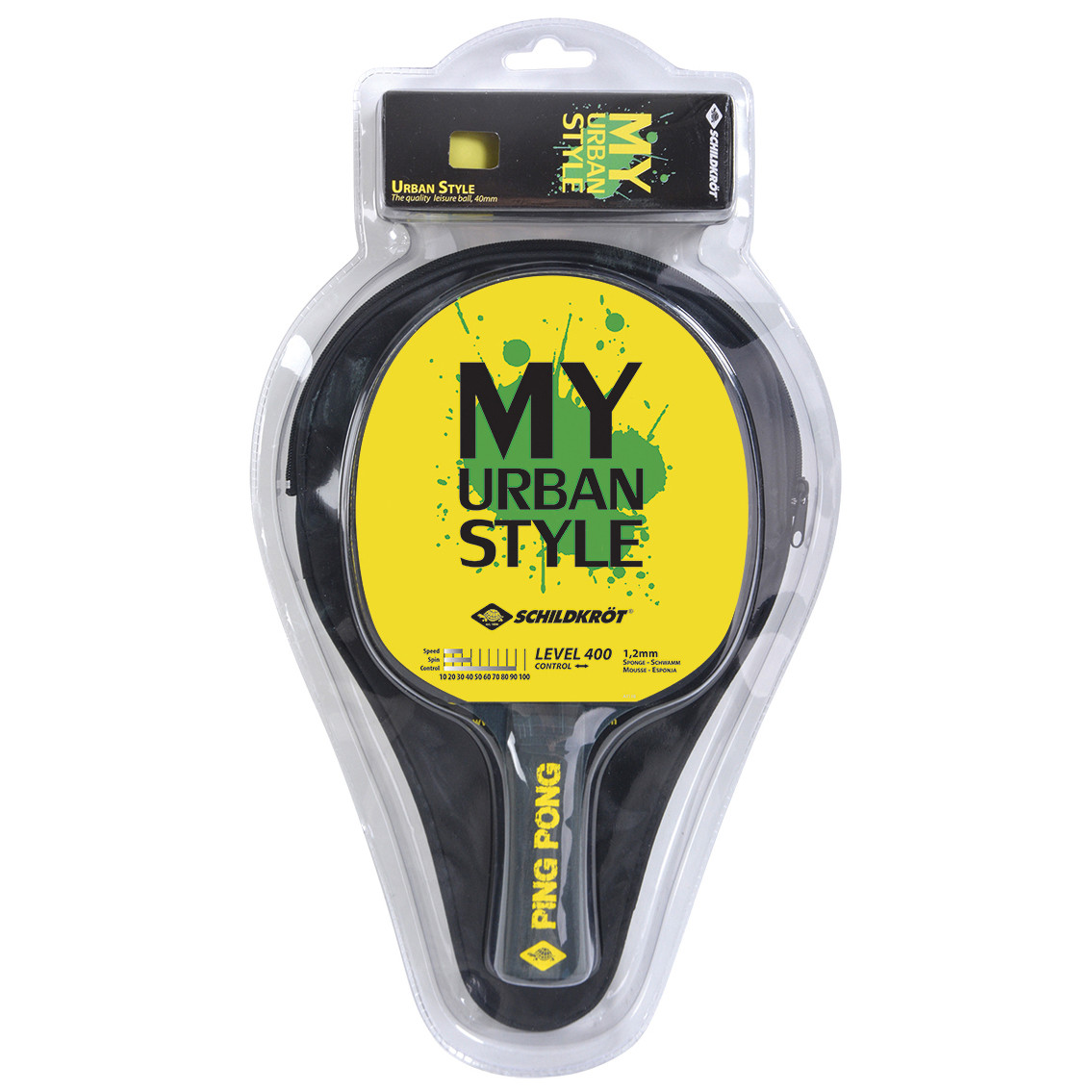 Całkowicie nowy zestaw do tenisa stołowego „My Urban Style” firmy Schildkröt nadaje kolor grze w tenisa stołowego i przemawia do młodych graczy. Zestaw zawiera wszystko, czego potrzeba, aby zacząć grę: wysokiej jakości rakieta rekreacyjna z ryflowaną wewnętrzną gumą i gąbką 1,2 mm zapewniającą określone przyspieszenie. Okładziny są żółto-czarne z nadrukiem. Czarny, wklęsły drewniany uchwyt wygodnie i pewnie leży w dłoni. W zestawie oprócz rakiety znajduje się również dopasowany pokrowiec na rakietę z przegrodą na 3 piłki oraz 3-pak żółtych piłek Schildkröt. Wszystko starannie zapakowane w blister, sprawia że jest to doskonały pomysł na prezent.