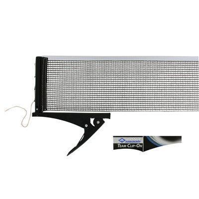 Popularny zestaw siatki do tenisa stołowego Team Clip On firmy Schildkröt przekonuje interesującym stosunkiem ceny do wydajności. Praktyczne mocowanie na klips (podobne do tzw. zacisku klejowego) umożliwia szybki montaż i demontaż bez śrub. Wystarczy otworzyć klips i wsunąć go na stół. Dodatkowe gumowe wkładki oraz dość napięta sprężyna mechanizmu zaciskowego zapewniają pewne i antypoślizgowe dopasowanie.