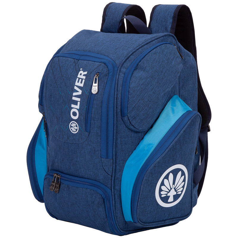 Bardzo pojemny plecak firmy Oliver, wykonany z myślą o sportach rakietowych. Wyposażony w pojemną komorę główną 2 większe kieszenie boczne (jedna z wewnętrzną kieszonką z siateczką na napój), dwie mniejsze kieszenie boczne z różnym poszyciem na akcesoria i przedmioty osobiste, pojemną kieszeń na buty, tylną przegrodę na rakiety oraz małą dodatkową kieszeń z przodu na drobiazgi. Wyściełane plecy, wygodne regulowane szelki z paskiem do przepięcia na klatce piersiowej dopełniają projekt, czyniąc go przemyślanymi bardzo pojemnym plecakiem.