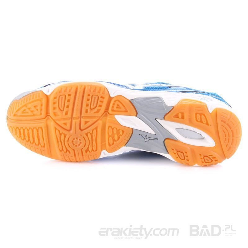 Treningowe obuwie marki Mizuno. Świetnie wykonane buty przeznaczone do sportów halowych.
