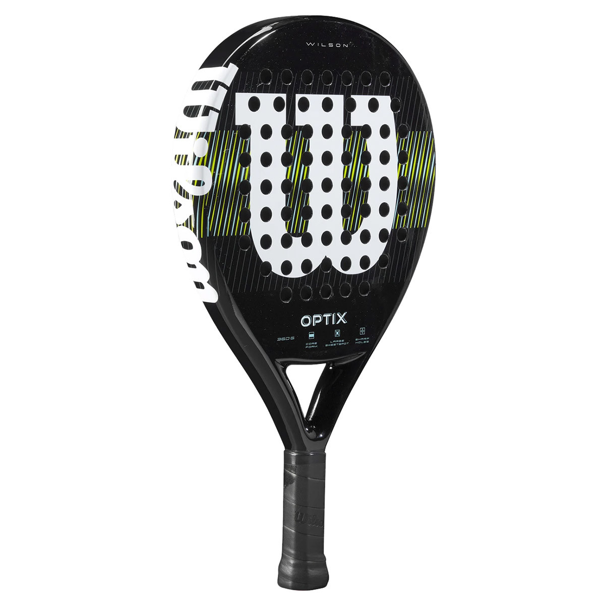 Doskonała rakieta dla początkujących, Optix V1 Padel Racket jest łatwa do opanowania i rozpoczęcia gry. Początkujący poczują się zwycięzcami od pierwszego odbicia, częściowo dzięki dużej główce, która zapewnia większą powierzchnię uderzenia, co pomaga w lepszej skuteczności. Ma tkaną ramę z włókna szklanego, która zapewnia stabilne, ale responsywne odczucie, z rdzeniem z pianki o niskiej gęstości, która może uderzać z mocą, ale nadal jest miękka. Okrągły kształt jest idealny do uzyskania stałego kontaktu, a zaawansowana technika wiercenia otworów zwiększa siłę z każdym uderzeniem. Wskocz na kort z bardzo przystępną rakietą Optix V1 firmy Wilson.