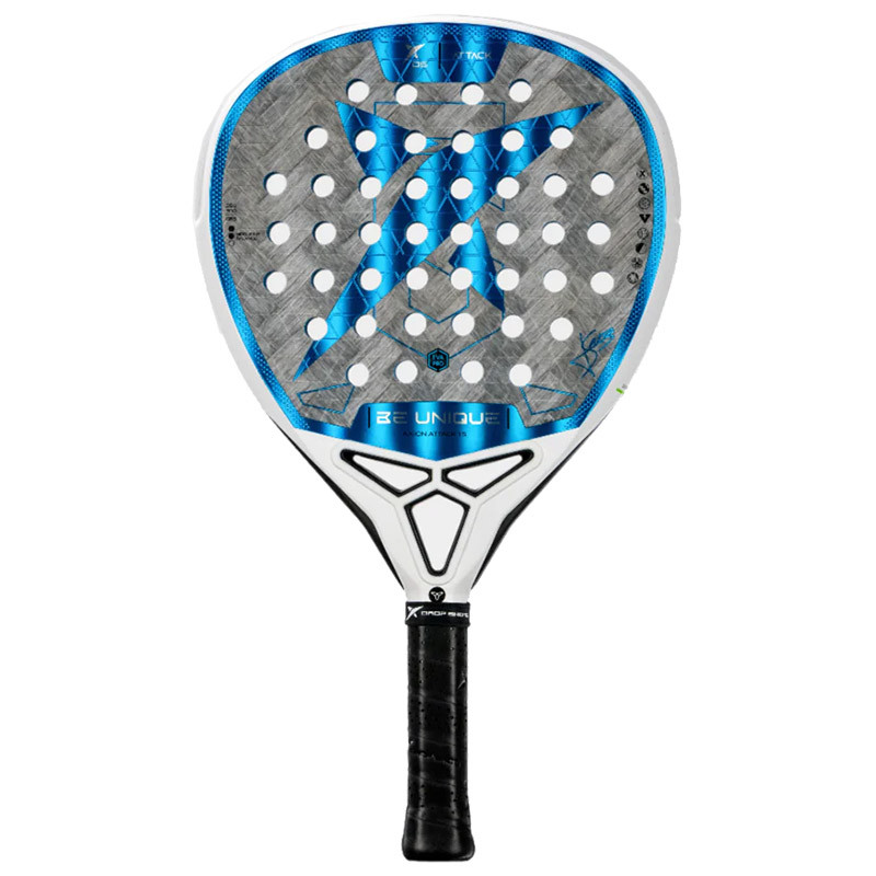 Rakieta Drop Shot Axion Attack 1.5 została zaprojektowana w kształcie łzy i wyposażona w gumę Eva Pro – gumę znaną z doskonałej kontroli. Dzięki dużej prędkości piłki zapewnia większą moc. Te cechy zapewniają średnio-wysokie wyważenie, z ciężarem przesuniętym w stronę główki rakiety.